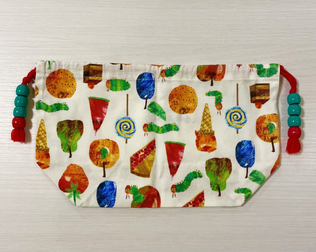 私の大好きなエリックカールさんの【はらぺこあおむし】柄で作りました。
