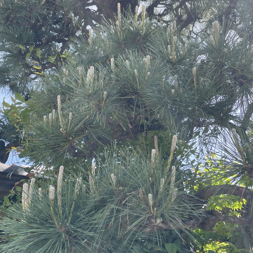 ↓また、ある日の散歩。え〜!松になんか生えてる〜!あのにょきにょきって松の文様のあの部分なのかも!
