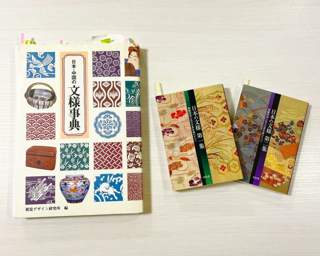 ↓文様の本はちゃんとしたものを1つは持っていると調べるときも便利で、アイディアを出す時も参考になります!