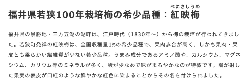 ↓福井県 紅映梅を100%使用した梅酒 専門店 梅酒 大人の甘くない梅酒 BENICHU 38° を販売している