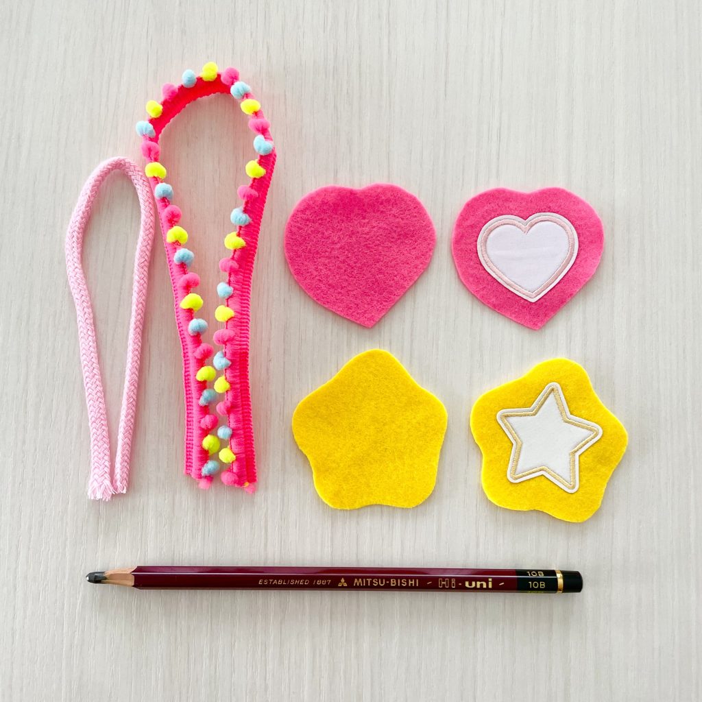 ・フェルト2枚(フリーハンドでおなじ形2枚。多少形が変になっても、ふちを縫うとかわいくなります。)