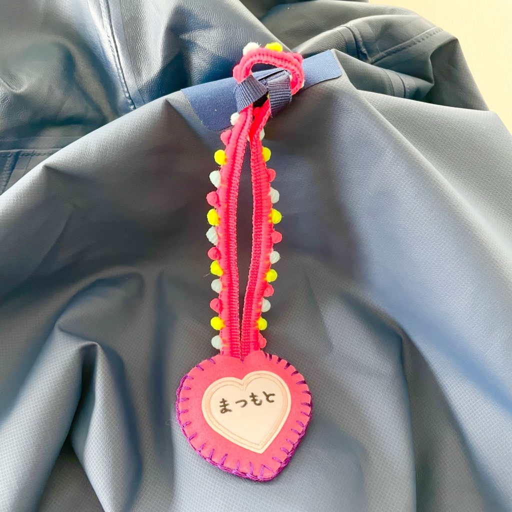 目立つから子ども自身が自分のものをすぐに見つけられるし、紐が長いと使いやすいし、傘やバッグのネームタグにも使えるととても好評でした!