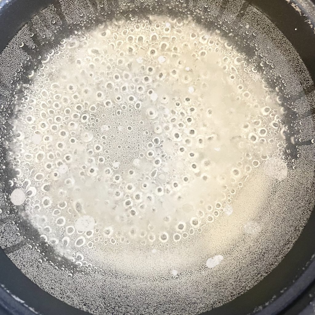 を入れて沸騰させ、完全に溶けるよう混ぜます。