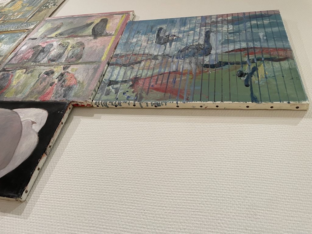 キャンバスを真横から見ると絵の具のポタポタたれる様子やガサガサした感じを見ると