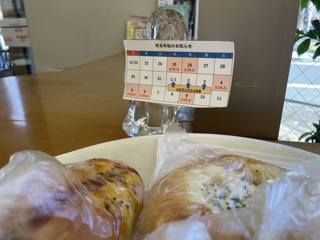 (パンが1つ200円、カフェラテ180円‼️お得〜‼️カレンダーの写真も撮りましたが、1月11日までしか載っていなかったので、興味がある方は事前に確認をお願いします!)