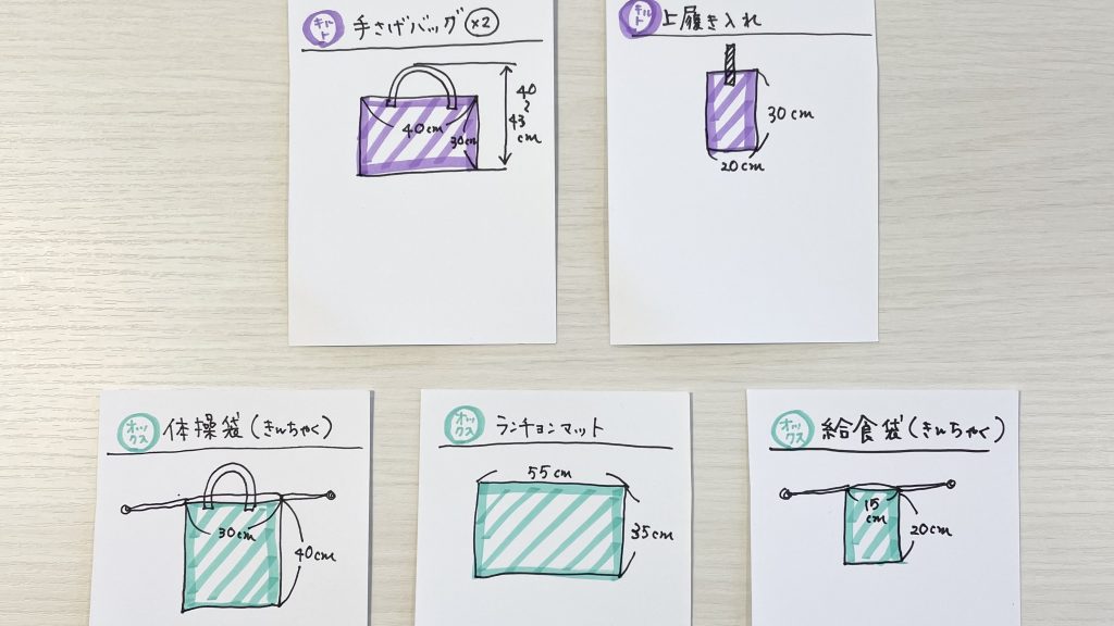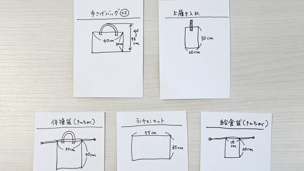 ③入園・通園・入学・通学グッズを作りたい!【縫い代込み】のサイズを書く